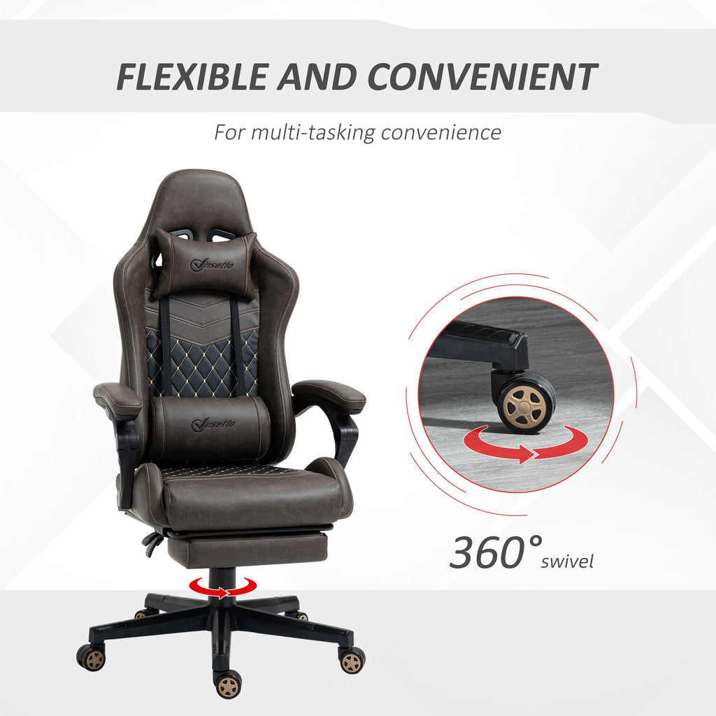 Vinsetto Racing Gaming Chair Diamond PU Leather Office Gamer Chair High Back Swivel Recliner with Footrest, Lumbar Support, Adjustable Height, Brown
